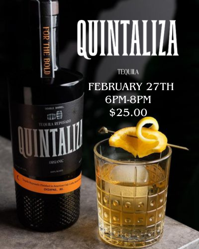 Join us and owner/founder Mike Winters as we sip Quintaliza and learn the craft behind the coffee influence in this reposado featuring a high proof edition. The night will also cocktails and light bites for the evening.